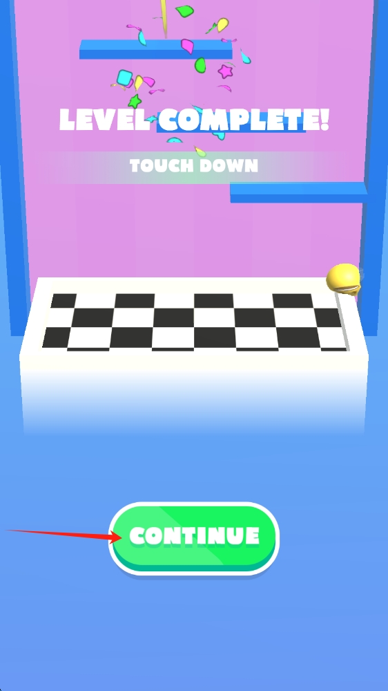 3、在游戲通關(guān)界面,點(diǎn)擊CONTINUE,繼續(xù)表情符號(hào)競(jìng)賽挑戰(zhàn),提升游戲技巧,點(diǎn)擊繼續(xù)游戲。