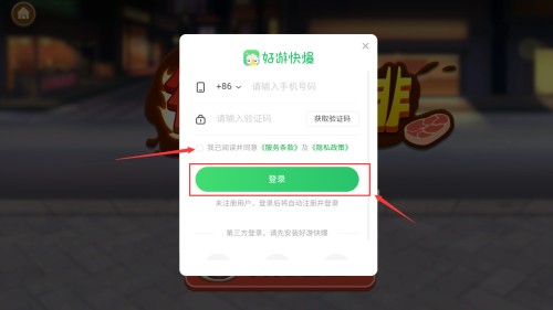 4、勾選紅框協(xié)議選項(xiàng),點(diǎn)擊紅框登錄按鈕,完成賬號(hào)驗(yàn)證流程。
