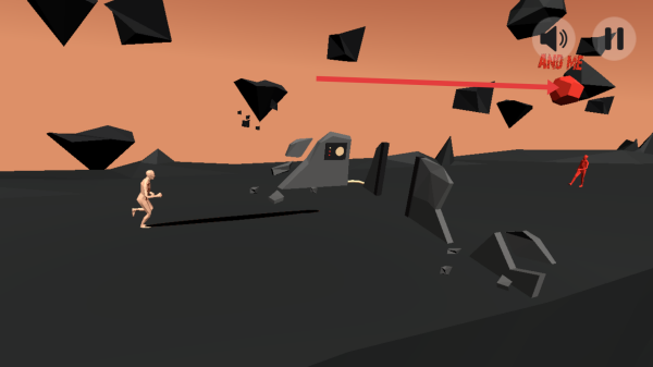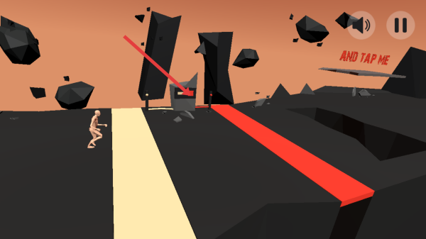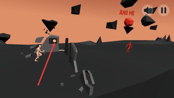 1、進(jìn)入場(chǎng)景,操控肉色的小人點(diǎn)擊他向前跑,通過(guò)滑動(dòng)屏幕來(lái)控制角色的移動(dòng)方向,點(diǎn)擊前方紅色的石塊砸向敵人。