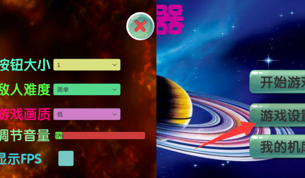 2、點擊紅色箭頭游戲設(shè)置可以調(diào)游戲難度。