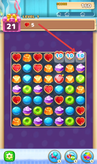 1、在消除過(guò)程中,注意觀察糖果的分布和排列,以及上面顯示需要消除的種類,尋找可以消除的組合。