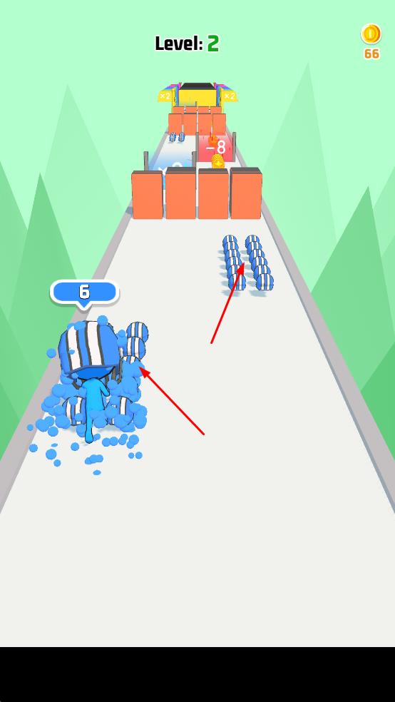 1、看到Level1標(biāo)識(shí),表明當(dāng)前關(guān)卡,操控藍(lán)色小人角色在道路上移動(dòng),通過(guò)左右移動(dòng)收集藍(lán)色條紋球,這是開(kāi)啟游戲的關(guān)鍵操作。