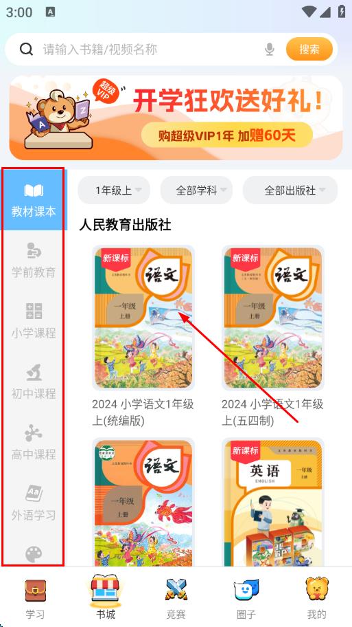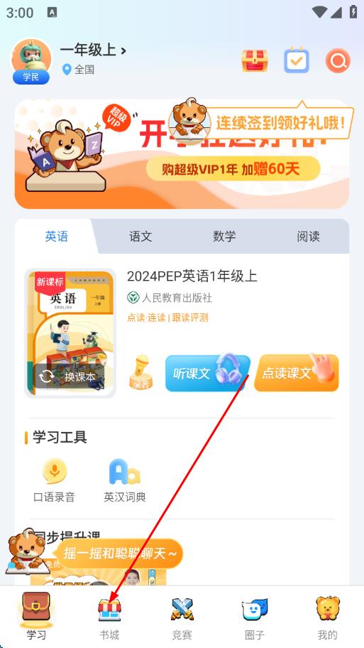 1、打開好爸爸點讀機App,在底部導航欄中點擊書城選項,進入書城界面。