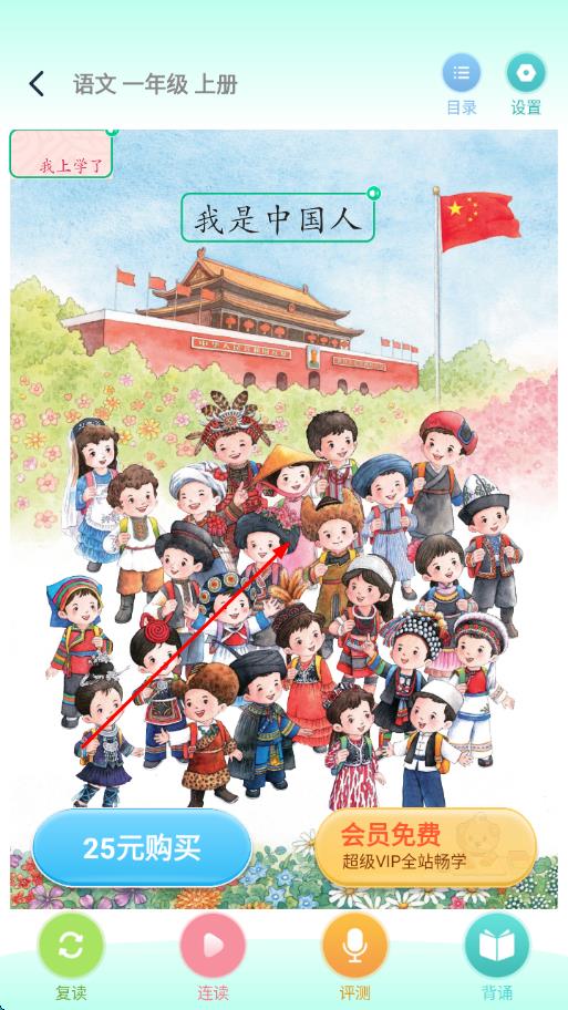 3、進入書籍內(nèi)容頁面,例如進入我是中國人這一課。