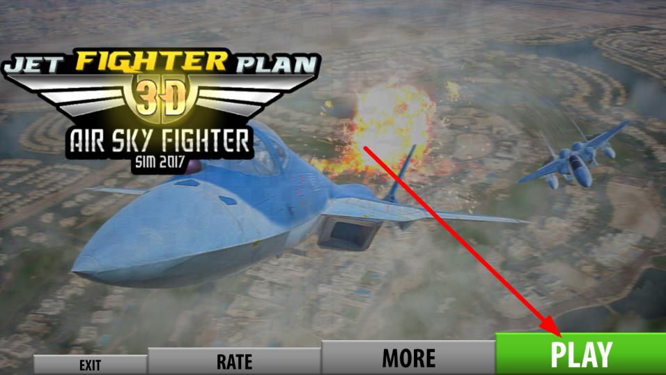 1、在JET FIGHTER PLAN 3D AIR SKY主界面,點擊綠色PLAY按鈕,進(jìn)入戰(zhàn)斗場景,駕駛戰(zhàn)機(jī)作戰(zhàn)。