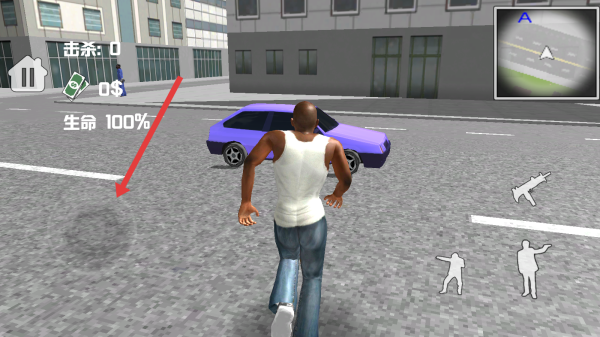 3、進(jìn)入到游戲場(chǎng)景,滑動(dòng)左側(cè)方向鍵操控角色在街頭移動(dòng),留意界面信息,準(zhǔn)備應(yīng)對(duì)敵人展開(kāi)戰(zhàn)斗。