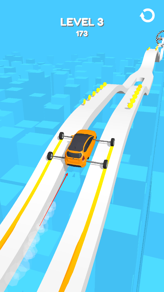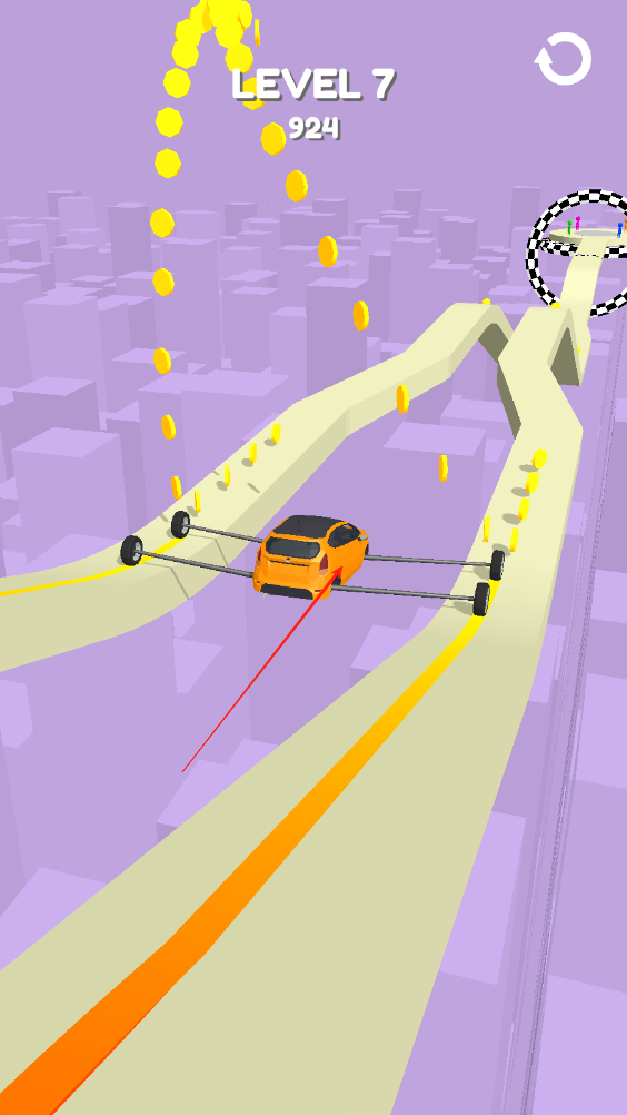 2、賽道闖關(guān)策略:面對不同關(guān)卡,需提前觀察賽道布局,規(guī)劃輪胎伸縮時機,避開尖刺、深坑等障礙,選擇最優(yōu)路線前進,提高通關(guān)效率。