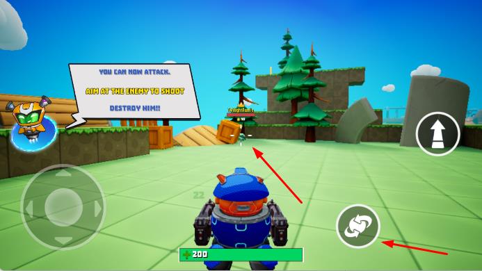 2、在對戰(zhàn)場景中,瞄準敵人,點擊攻擊按鈕發(fā)起進攻,利用道具可完成變身,增強戰(zhàn)斗力,同時收集場景中的金幣。
