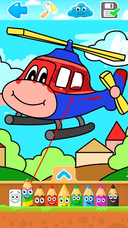 2、在填色頁面,從下方選擇彩色鉛筆,點(diǎn)擊圖案的對(duì)應(yīng)區(qū)域,進(jìn)行填色,發(fā)揮創(chuàng)意,給圖案上色。