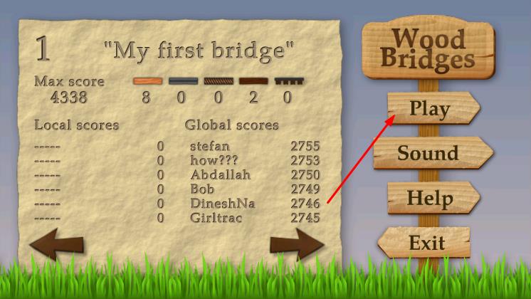 1、進(jìn)入游戲,在主界面點(diǎn)擊Play按鈕,開(kāi)始橋梁建造關(guān)卡挑戰(zhàn)。