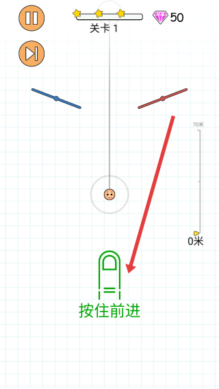 1、游戲開始后,看到按住前進(jìn)提示時(shí),長(zhǎng)按屏幕讓角色前進(jìn),這是推動(dòng)游戲進(jìn)程的基礎(chǔ)操作,可使角色朝著目標(biāo)移動(dòng)。