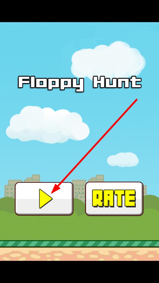 1、在Floppy Hunt主界面,點擊左側(cè)黃色三角播放按鈕,進(jìn)入狩獵小黃鴨關(guān)卡,開始游戲。