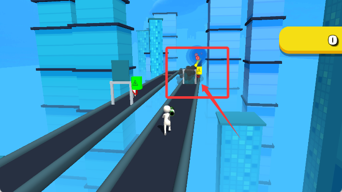 2、將控制角色沿賽道靈活奔跑,注意觀察前方標(biāo)記的通行區(qū)域。