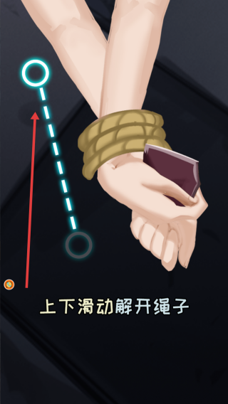 2、當(dāng)手部被繩子束縛時(shí),按照提示上下滑動(dòng)屏幕,通過(guò)這個(gè)操作可以解開繩子,從而獲得自由繼續(xù)進(jìn)行后續(xù)的游戲流程。