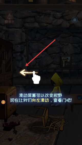 3、若需查看特定區(qū)域,可滑動(dòng)屏幕改變視野,此時(shí)向左滑動(dòng)屏幕,便能查看門口區(qū)域,以便推進(jìn)下一步的探索行動(dòng)。