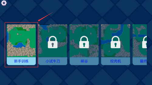 4、選擇紅框新手訓(xùn)練關(guān)卡,點(diǎn)擊進(jìn)入第一關(guān)挑戰(zhàn)。