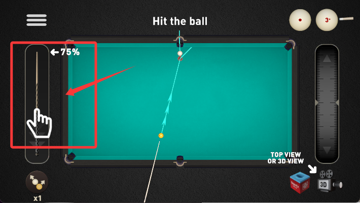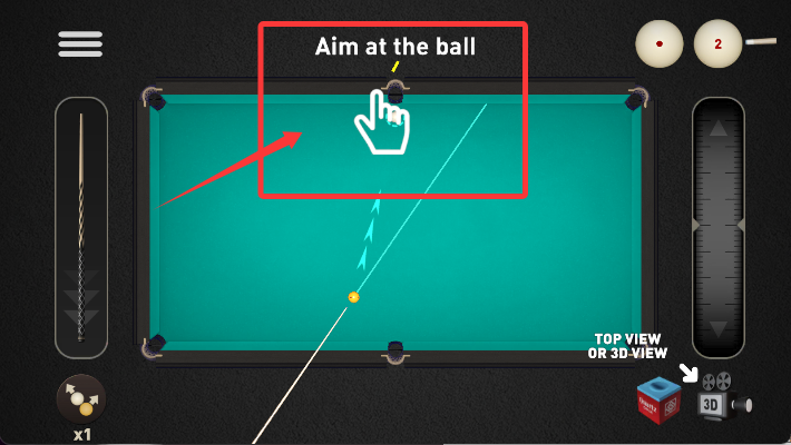 1、游戲開始后,根據(jù)"瞄準目標球"提示,手指滑動確定擊球路線。