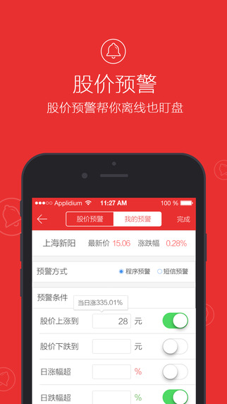支持漲幅和價(jià)格預(yù)警,短信和push消息推送任你選