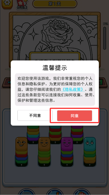 1、下載安裝好游戲后打開,點擊同意進入游戲。