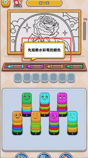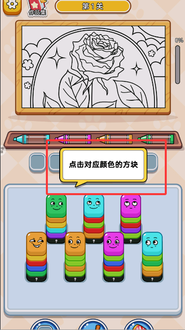 3、觀察完水彩筆的顏色后,點擊對應顏色的方塊進行游玩。
