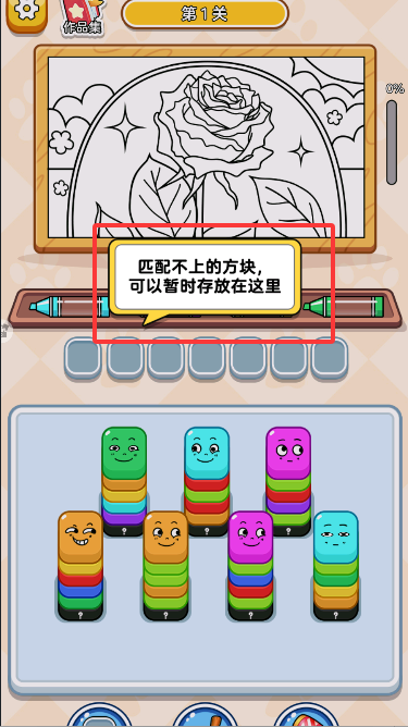 4、點擊對應顏色的方塊后,匹配不上的方塊可以寄存在上方。