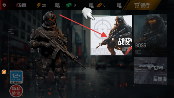 1、進入游戲界面,點擊戰(zhàn)役模式選項,開啟游戲的戰(zhàn)役挑戰(zhàn),體驗游戲的戰(zhàn)斗劇情。
