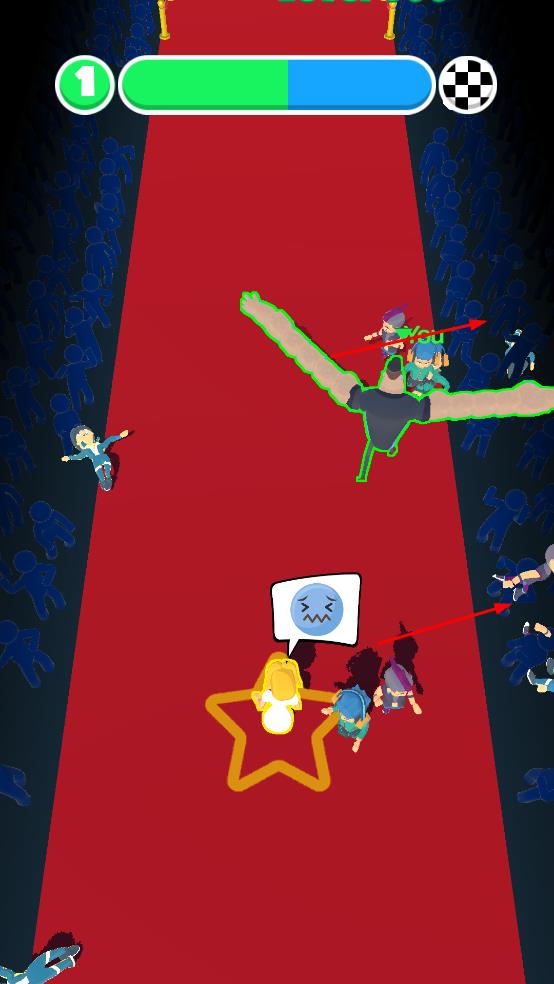 2、會(huì)遇到其他角色和障礙物,角色需要避開障礙物并與其他角色互動(dòng),同時(shí)注意上方的進(jìn)度條和關(guān)卡標(biāo)識(shí)。