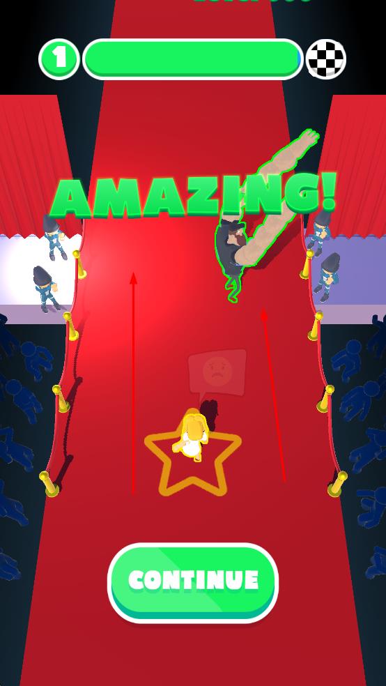 3、成功完成關(guān)卡后會(huì)出現(xiàn)AMAZING的提示和CONTINUE按鈕,點(diǎn)擊按鈕可進(jìn)入下一關(guān),繼續(xù)游戲。