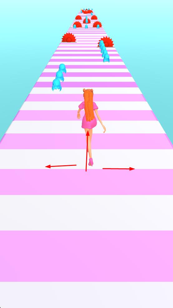 1、操控角色在粉色和白色相間的跑道上移動(dòng),角色可前后左右移動(dòng),這是開啟游戲的關(guān)鍵操作,順利開啟游戲之旅。