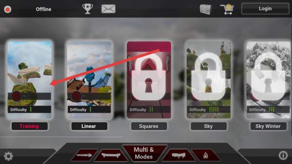 1、在游戲模式選擇界面,通過點擊Training模式卡片,進入該模式的專屬關(guān)卡選擇頁面。