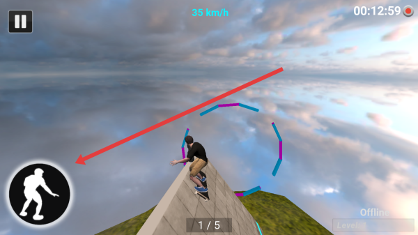3、游戲中在滑板行駛到邊緣時,可以點擊左側(cè)跳躍鍵,讓角色完成跳躍動作,順利通過空中障礙。