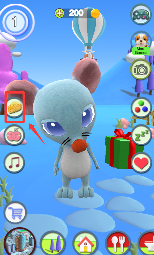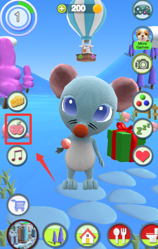 3、點(diǎn)擊紅色框框的蘋(píng)果,給老鼠補(bǔ)點(diǎn)維生素C吧。