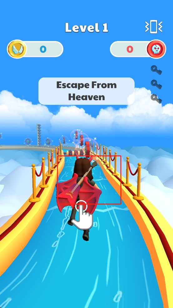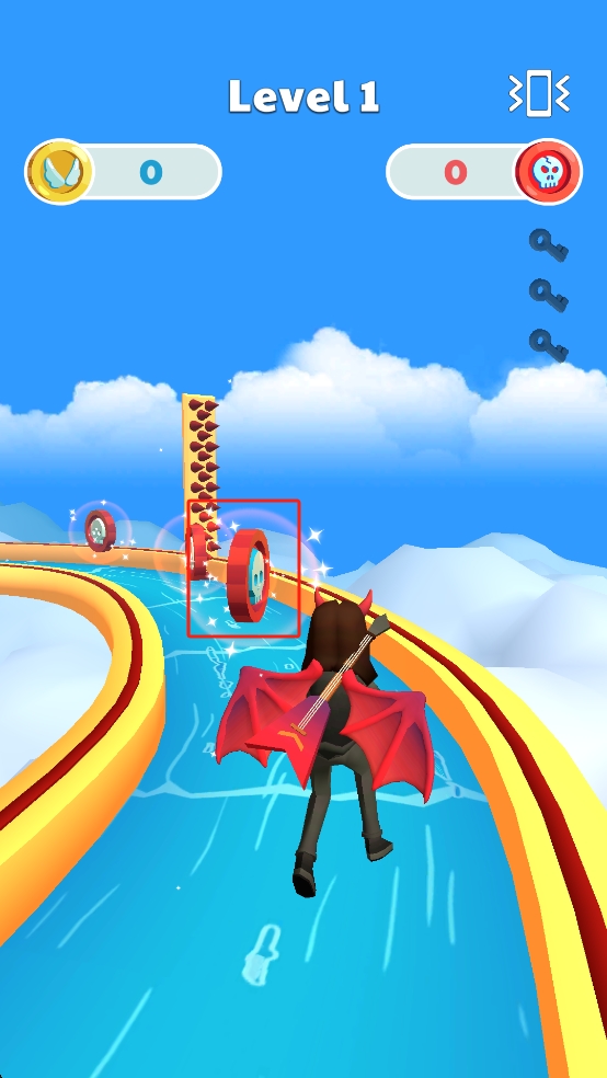 1、這關(guān)我們操控背吉他、披紅翼的角色沿天國跑道逃亡,滑動屏幕躲避尖刺、轉(zhuǎn)輪等障礙,開啟逃離之旅。
