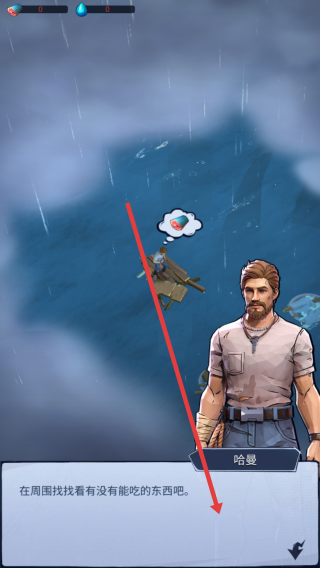 1、開啟游戲,根據(jù)角色的提示,在周圍尋找可食用的物品,這些物品可以補(bǔ)充角色的生命值。