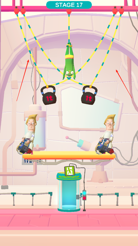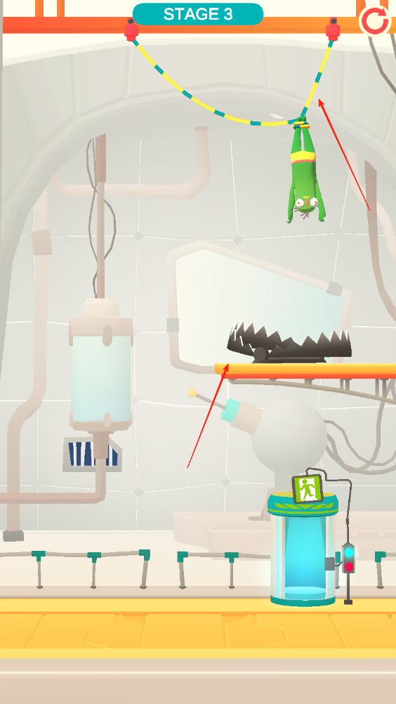 1、滑動(dòng)屏幕將箭頭所指的線切斷,讓僵尸遠(yuǎn)離下方的陷阱,從安全的地方降落,僵尸會(huì)自動(dòng)走到離開的通道。