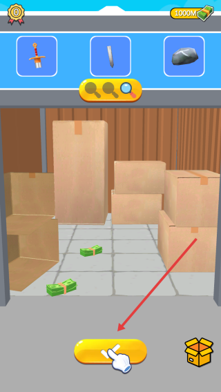 2、在倉庫場景中,參照上方顯示的道具圖標(biāo),尋找并點(diǎn)擊對應(yīng)物品完成收集,同時(shí)可拾取散落的鈔票。