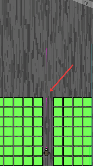 1、進(jìn)入游戲后,根據(jù)箭頭提示方向,操控角色發(fā)射出子彈,消除前方綠色的方塊,方便用戶通行。