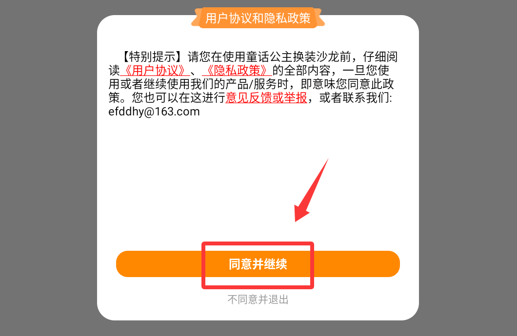 1、點(diǎn)擊用戶協(xié)議和隱私政策的同意并繼續(xù)。