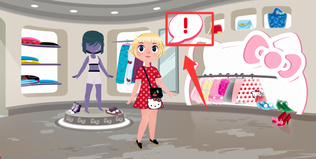 3、有位顧客進(jìn)來了,點(diǎn)擊箭頭那里看看它需要什么。