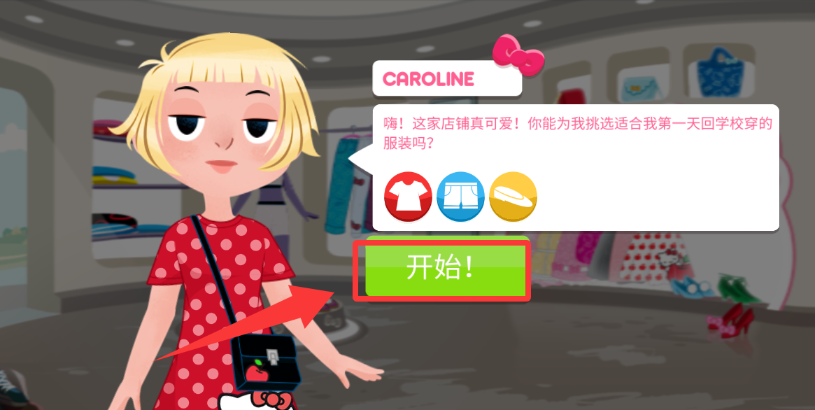 4、幫這位客戶挑選回學(xué)校穿的服裝,點(diǎn)擊開始。