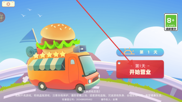 1、進入游戲烹飪大舞臺界面,點擊第1天-開始營業(yè)按鈕,開啟游戲的第一天營業(yè)挑戰(zhàn),進入游戲的主場景。