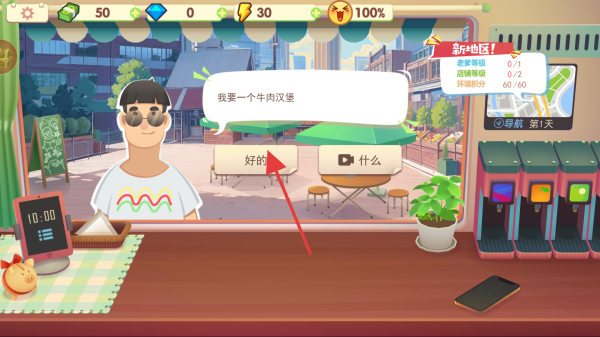 3、在餐車經營場景中,當顧客下單后,點擊好的按鈕,確認訂單,開始為顧客制作美食,滿足顧客的需求,獲取游戲得分和獎勵。