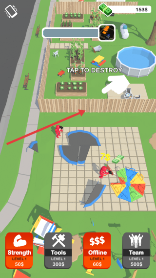2、破壞當前物品后,跟隨新出現(xiàn)的TAP TO DESTROY指引,點擊下一個目標,持續(xù)拓展破壞區(qū)域。