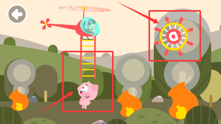 4、準(zhǔn)確投放救援裝置,成功將被困的小豬安全轉(zhuǎn)移至安全區(qū)域。