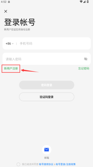 1、點(diǎn)擊紅框新用戶注冊按鈕,進(jìn)入手機(jī)號注冊流程。