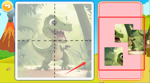 2、趣味小游戲集合,包含拼圖、記憶配對(duì)、涂色等簡(jiǎn)單玩法。這些小游戲都融入了恐龍?jiān)?,在娛?lè)中鞏固學(xué)習(xí)內(nèi)容。