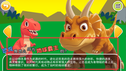 2、寓教于樂(lè)的知識(shí)體系,在游戲過(guò)程中自然融入恐龍科普內(nèi)容,包括名稱(chēng)、特征、生活習(xí)性等基礎(chǔ)信息。通過(guò)互動(dòng)方式幫助孩子輕松記憶。