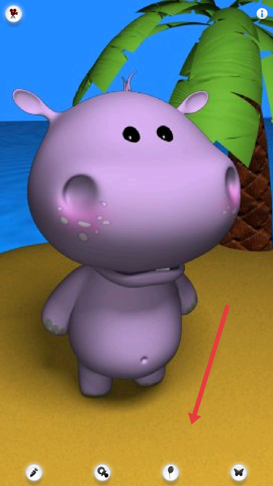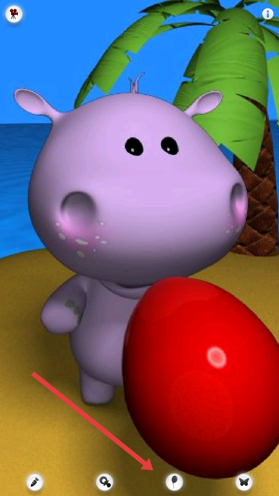 3、吃完胡蘿卜,觀察河馬狀態(tài)的變化,繼續(xù)點(diǎn)擊后面的氣球的標(biāo)志,與河馬玩樂積累互動(dòng)的次數(shù)。