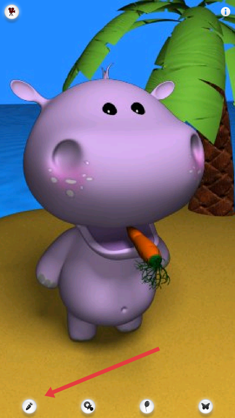 2、游戲中嘗試點(diǎn)擊不同道具,點(diǎn)擊胡蘿卜標(biāo)志給河馬喂食,根據(jù)河馬反饋,解鎖更多趣味的玩法。