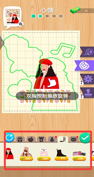 4、還有豐富的裝飾物品和卡通貼圖供我們使用,雙指控制縮放旋轉。